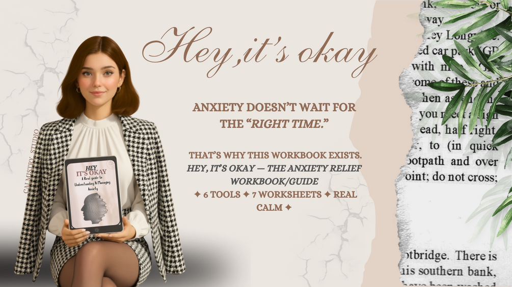 That’s why I made Hey, It’s Okay ~ a short, aesthetic workbook built for Gen Z brains. Not a 400-page textbook. Not fluffy Pinterest advice. Just tools you’ll actually use.